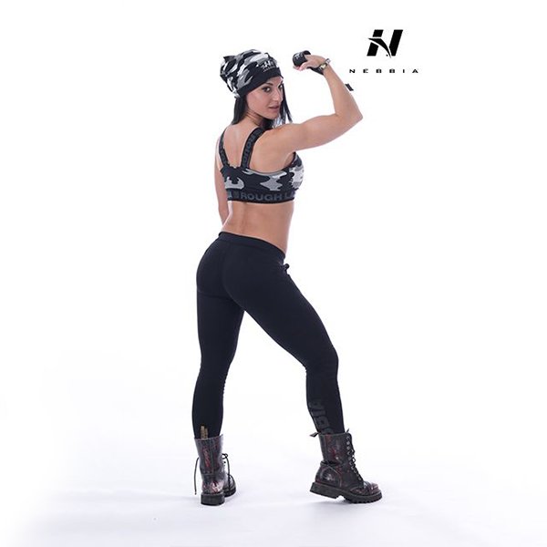 Camo mini top is perfect for your hot summer day workouts at the gym or outdoor activities. The shape and design of the mini top will emphasize your decollete and adds a subtle push-up effect. Straps and bottom edging features NEBBIA logo and “stone washed” design adds roughness to the overall look.